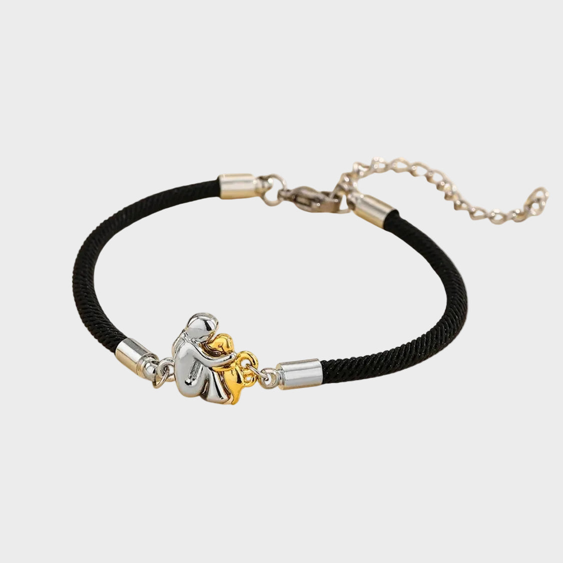 Αυτό το κομψό βραχιόλι με το μενταγιόν είναι ένας τρυφερός τρόπος να κρατήσετε κοντά σας τις ειδικές αναμνήσεις. Ο σχεδιασμός μιας γυναίκας και του σκύλου της αποτυπώνει την αγάπη, την πίστη και την ήσυχη παρηγοριά - μια απλή υπενθύμιση του δεσμού που δεν ξεθωριάζει ποτέ. Με το μαλακό μαύρο κορδόνι και το ελαφρύ ασημένιο-χρυσό μενταγιόν είναι ιδανικό για καθημερινή χρήση ή ως μια στοχαστική δώρο από την καρδιά.