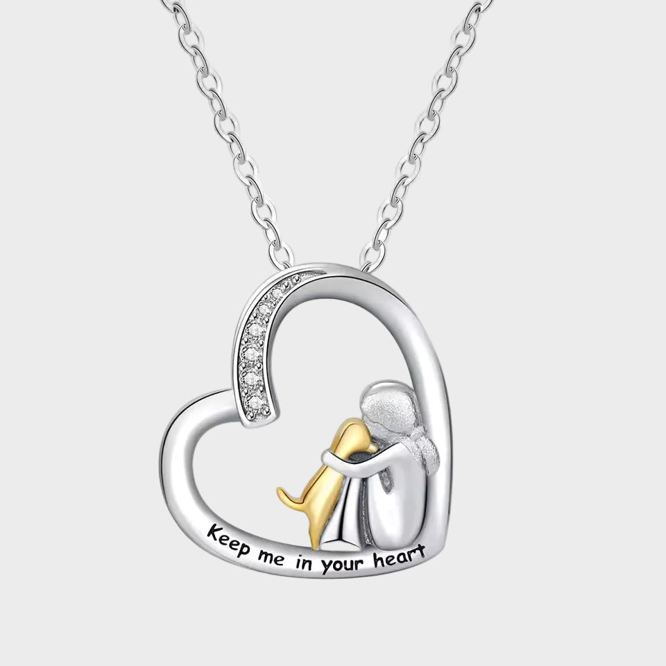 Αυτό το κολιέ είναι ένας τρυφερός τρόπος να κρατάτε την αγάπη κοντά σας. Ο σχεδιασμός δείχνει μια γυναίκα και τον σκύλο της σε μια ζεστή, φροντιστική αγκαλιά — απλός, τρυφερός και γεμάτος νόημα. Είναι ελαφρύ για να το κάνετε, εύκολο να το συνδυάσετε με μια εμφάνιση, και μια όμορφη υπενθύμιση για τον δεσμό που θα κάνετε για πάντα.