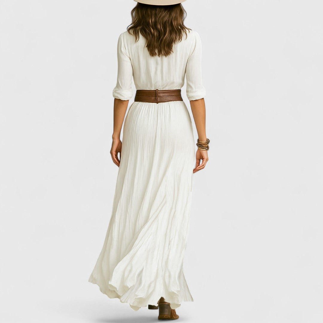 Κλεονίκη - Μακρύ λινό φόρεμα με διακριτική κομψότητα και φυσική άνεση
